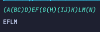 - 소괄호 사이에 존재하는 모든 문자 제거하고 남은 문자만 출력하시오
