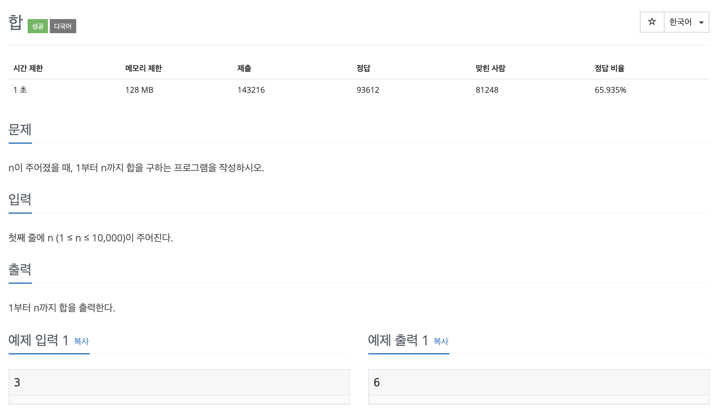 n이 주어졌을 때, 1부터 n까지 합을 구하는 프로그램을 작성하시오.
