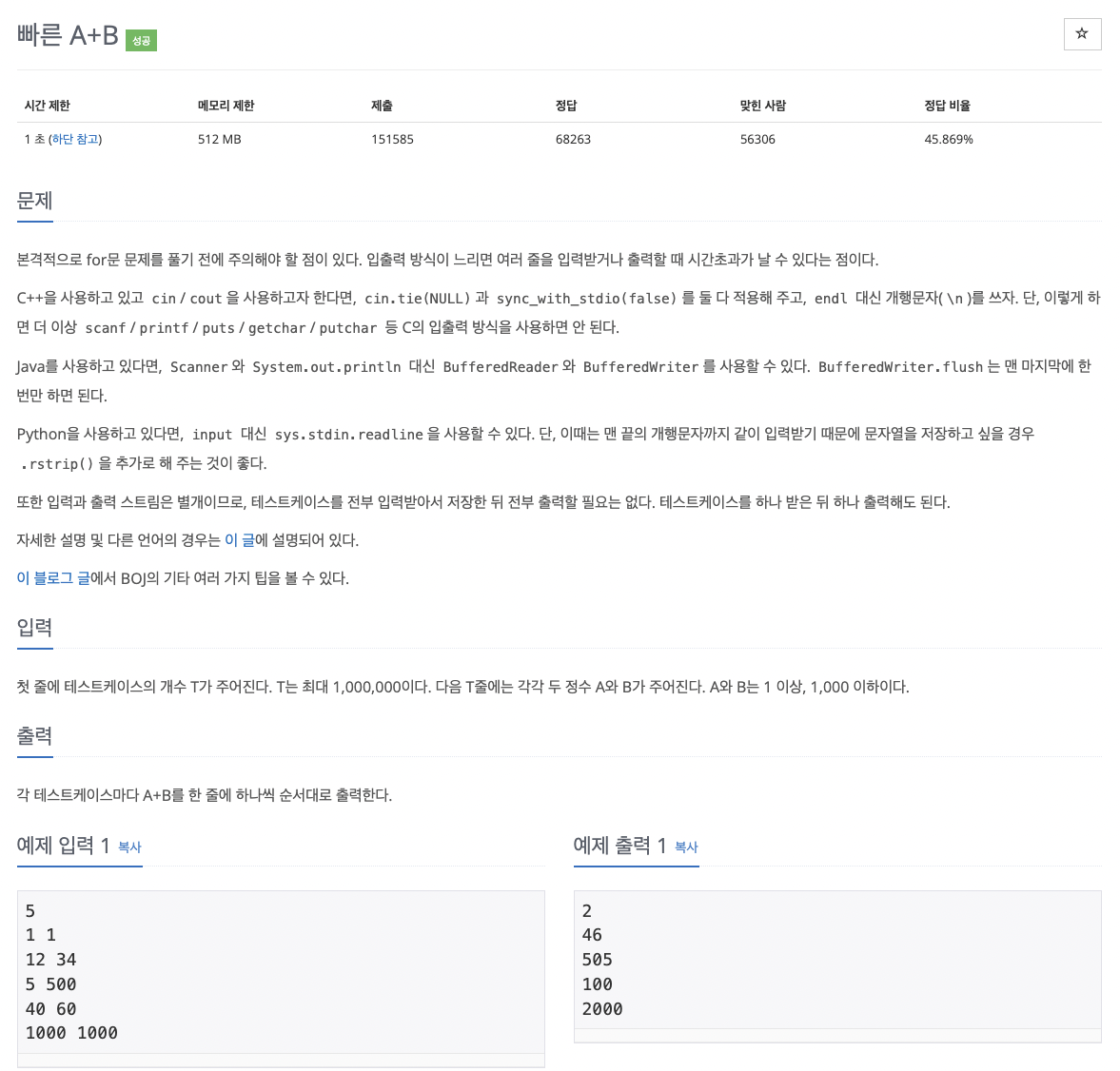 15552번: 빠른 A+B