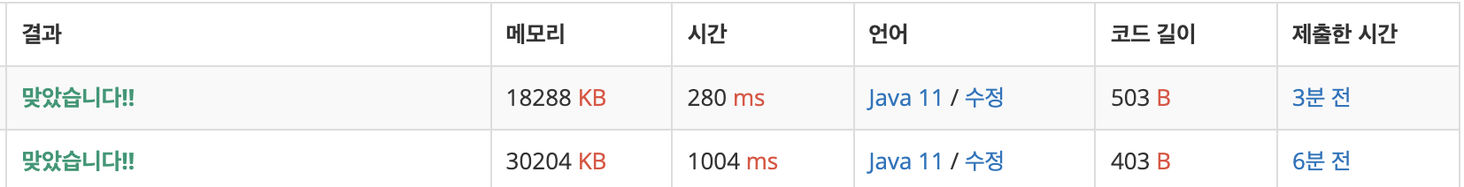 속도가 StringBuilder를 사용해서 append 해주는게 한참 빨랐다. 처음에는 없이 풀었다가 1004ms까지 찍히는걸 보고 바로 코드를 고쳐서 제출했다.