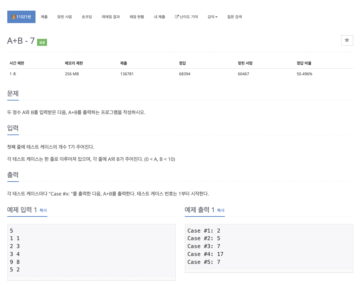 11021번: A+B - 7
