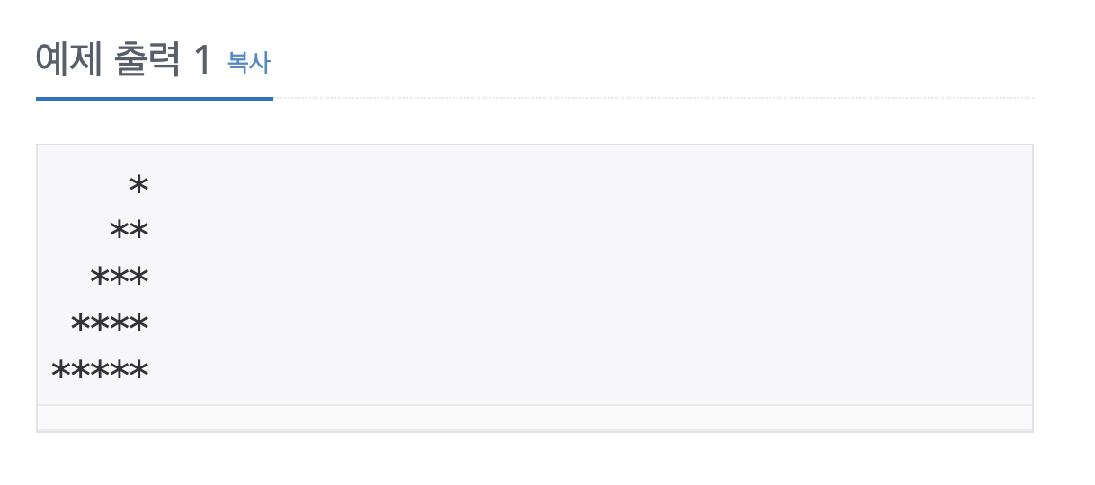 이번엔 별 찍기-1 에 비해서는 어려운 문제이긴하다. 처음 보는 사람이라면 어떻게 구현해야 할지 고민하게 될 것이다.