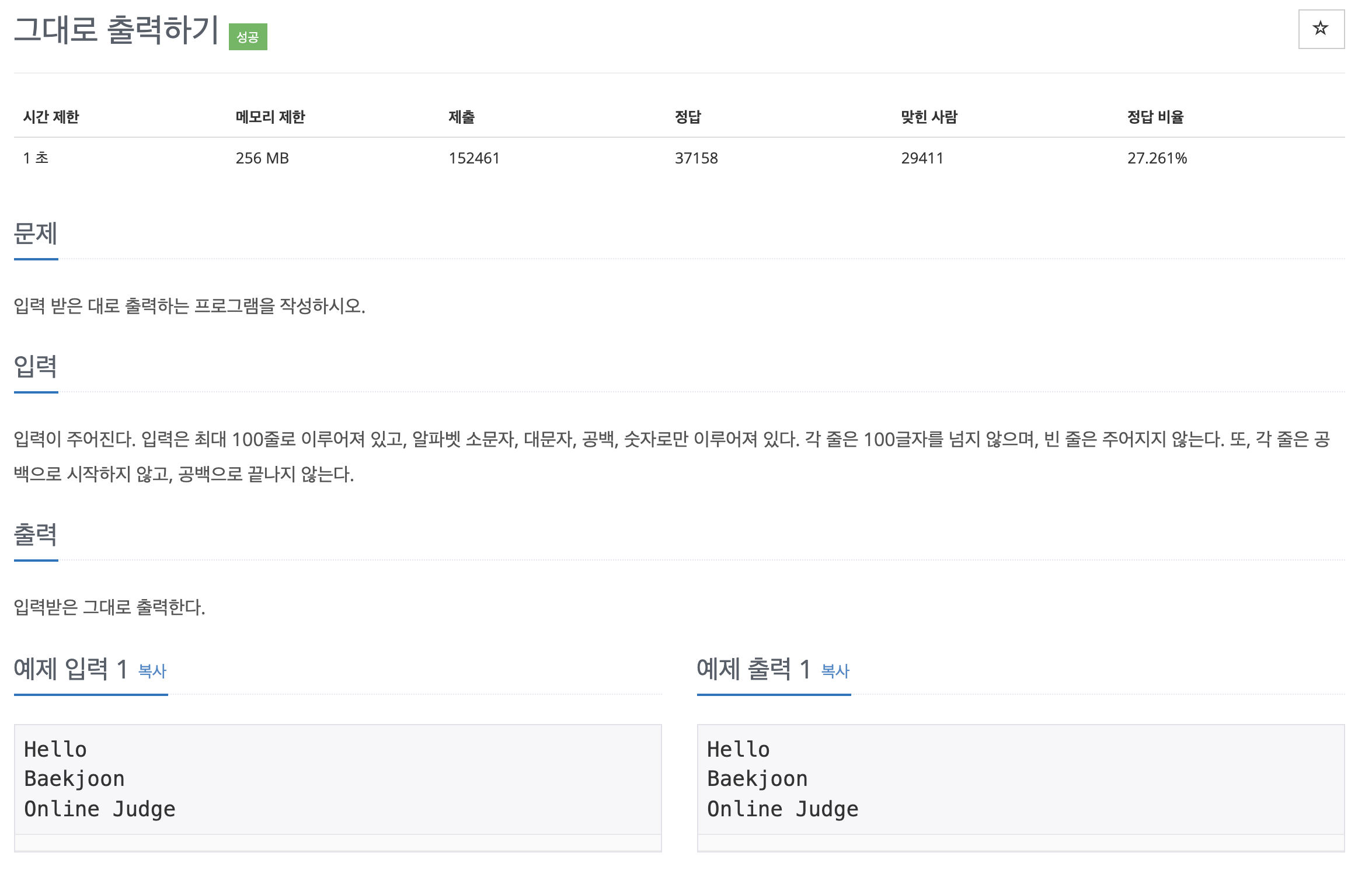 말 그대로 출력 하는 프롤그램이라 주의 할 사항은 보이지가 않는다. 바로 문제풀이로 가겠습니다.