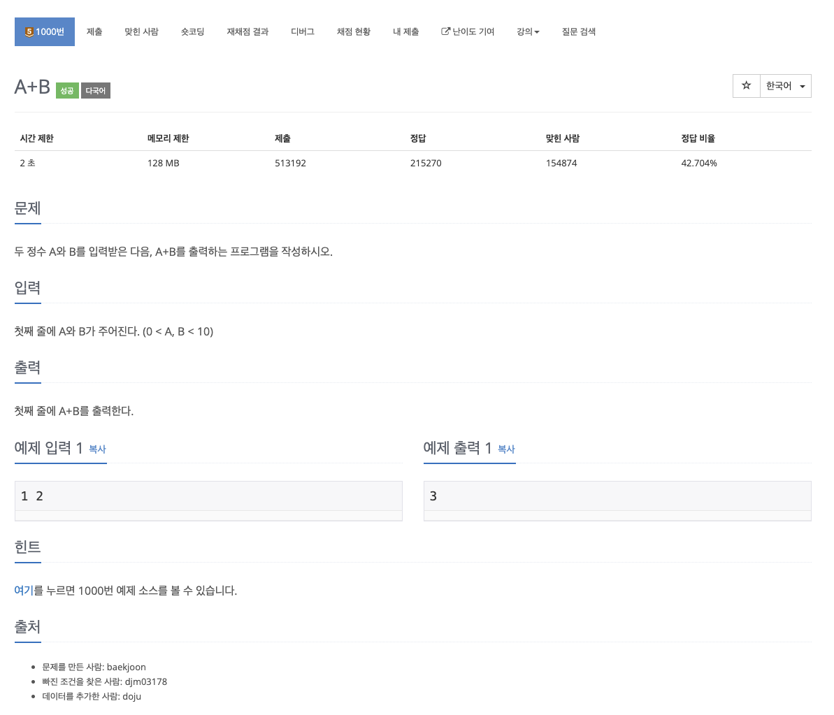 두 정수 A와 B를 입력받은 다음, A+B를 출력하는 프로그램을 작성하시오.
