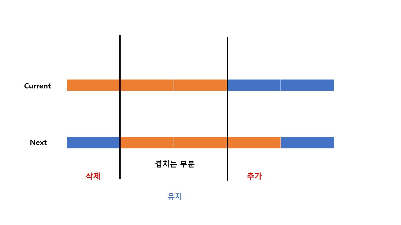 Current(현재 배열) -> Next(다음 배열) 갈때 창문틀이 움직이면서 포함되지 않는 값들은 빼버리며 포함되는 값들을 더해줍니다.