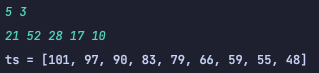 System.out.println(T.solution(N, K, arr));