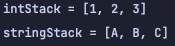 Stack<String> stringStack = new Stack<>(); // String형 Stack